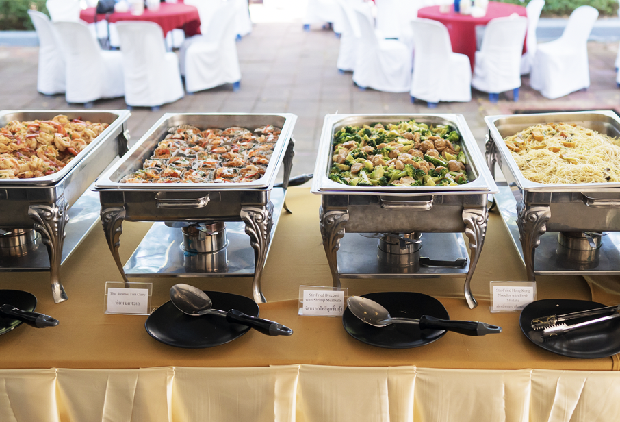 งานจัดเลี้ยงหรืองานสัมมนาจะสมบูรณ์แบบได้ ก็ต้องมีองค์ประกอบ ของอาหารไปรวมอยู่ด้วย ทางบริษัทฯรังสรรค์อาหารสำหรับงานจัด- เลี้ยงและสัมมนาได้หลากหลายรูปแบบ และหลากหลายเมนู ไม่ว่าจะเป็น อาหารไทยหรืออาหารต่างชาติ นอกจากนี้ทีมผู้ให้บริการได้รับการ อบรมงานบริการมาอย่างดี เพื่อสร้างความประทับใจแก่ผู้รับบริการ โดยนำเอารอยยิ้มและความพึงพอใจของลูกค้าเป็นเป้าหมายสูงสุด ในงานบริการของเรา
